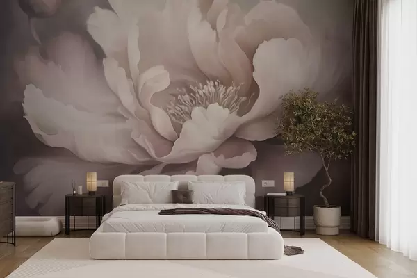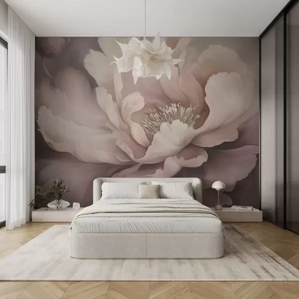 Murais de parede Flor de peónia em tons pastel sobre um fundo de nevoeiro Nr. w03600v1
