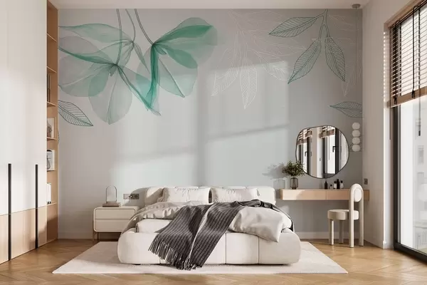 Murais de parede delicadas flores e folhas translúcidas em tons de verde Nr. w03616v1