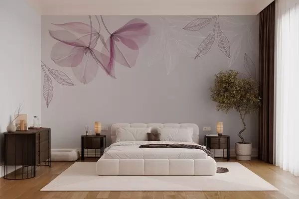 Murais de parede delicadas flores e folhas translúcidas em tons de púrpura Nr. w03616v4
