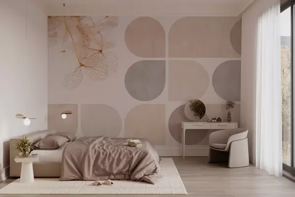Murais de parede geometria e flores secas com veios em tons de bege Nr. w03617