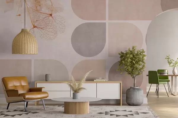 Murais de parede geometria e flores secas com veios em tons de bege Nr. w03617