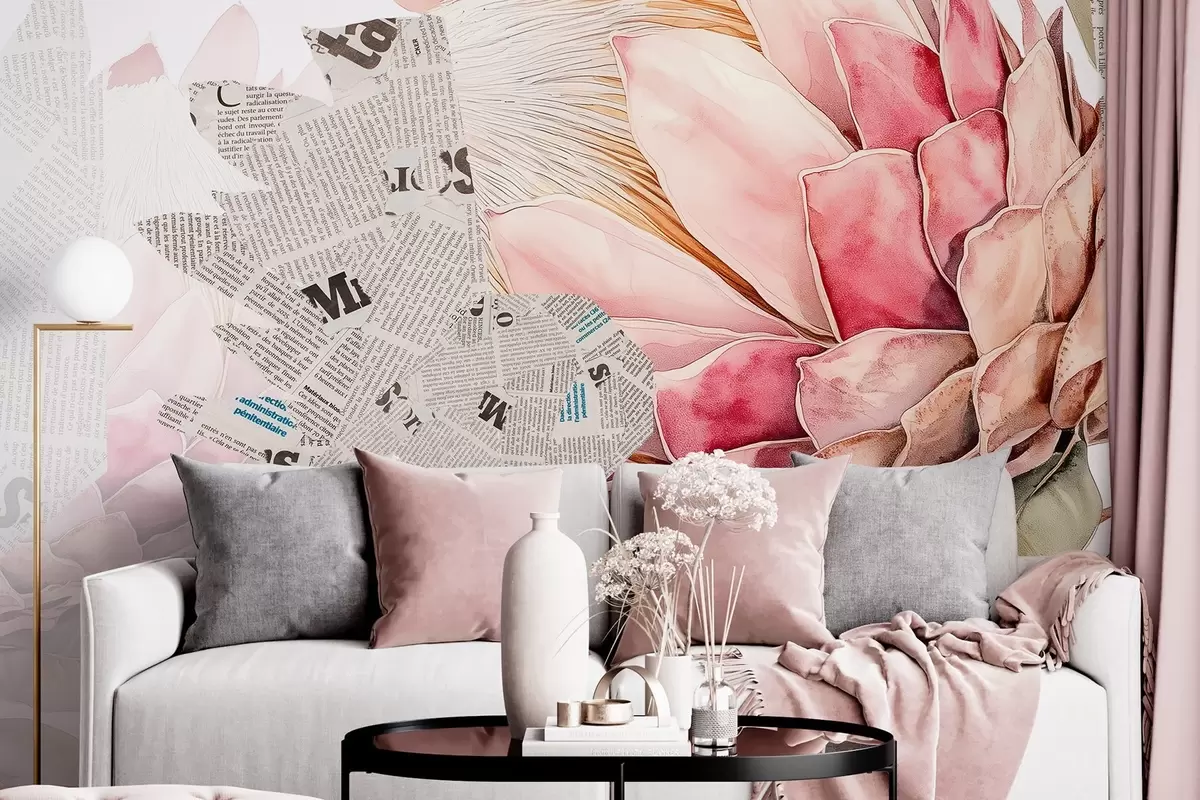 Murais de parede Flores Protea, arte de jornal, floral, tropical, cores naturais Nr. w03667