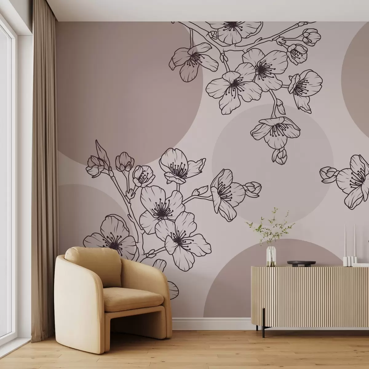 Murais de parede Ramos com flores em círculos coloridos em tons de castanho Nr. w03712