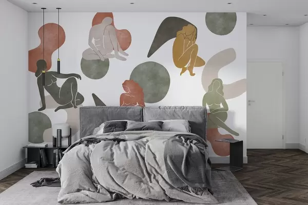 Murais de parede Abstracções geométricas com silhuetas femininas, estilo boho, castanho, bege, verde Nr. w03753