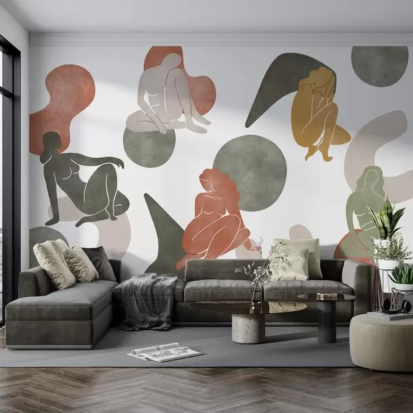 Murais de parede Abstracções geométricas com silhuetas femininas, estilo boho, castanho, bege, verde Nr. w03753