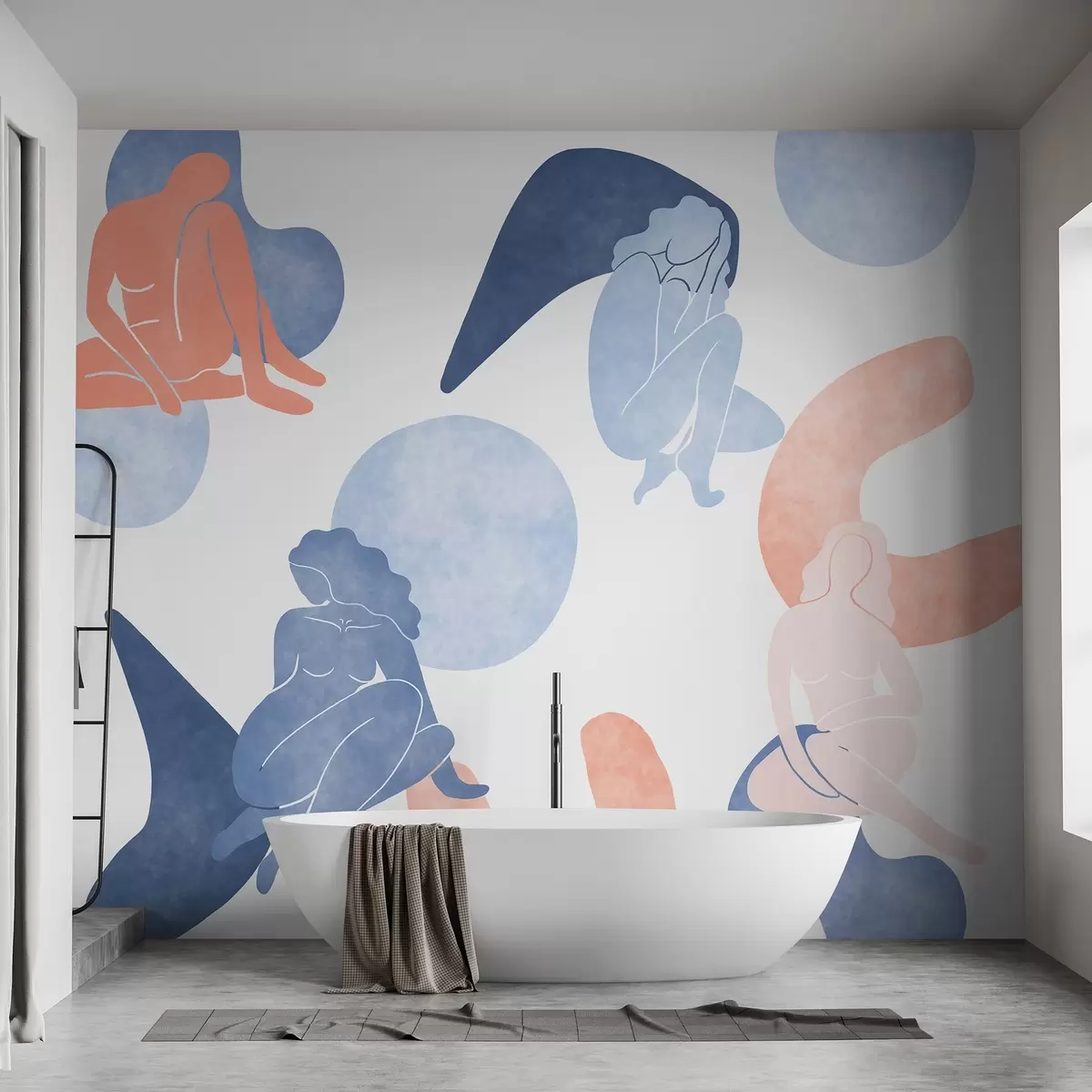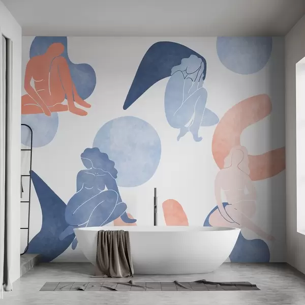 Murais de parede Abstracções geométricas com silhuetas femininas, estilo boho, azul, bege, rosa Nr. w03753v1