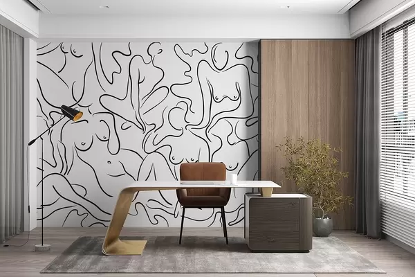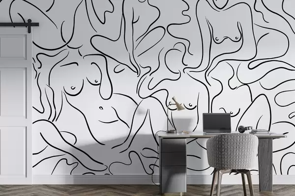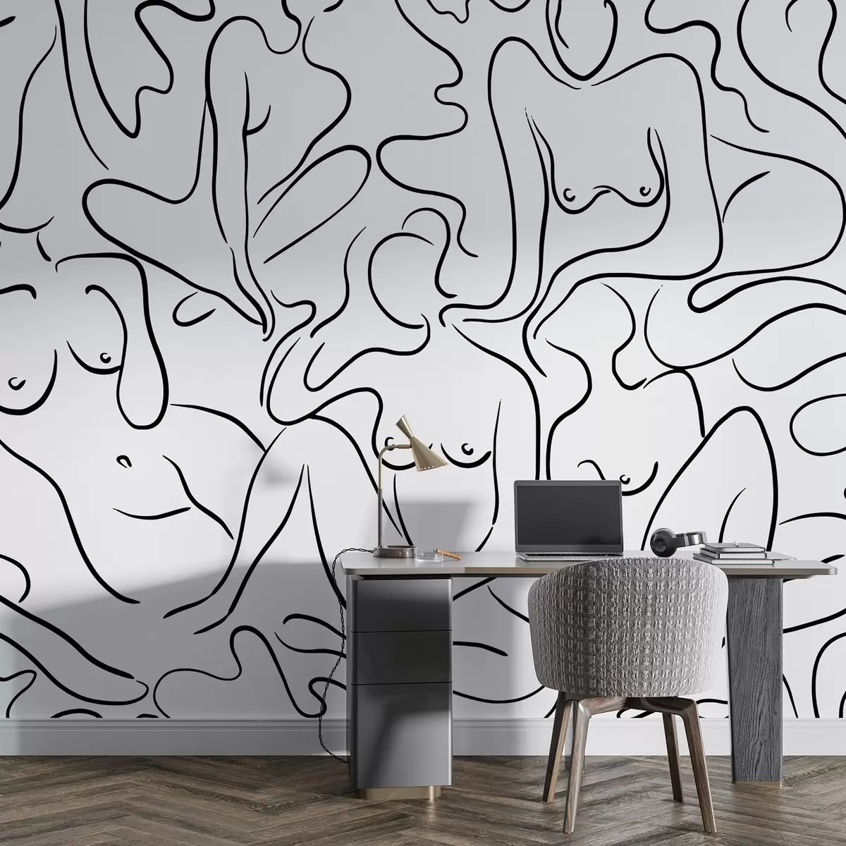 Murais de parede Desenho de linhas, silhuetas de corpos de mulheres, abstração, cor preta Nr. w03755