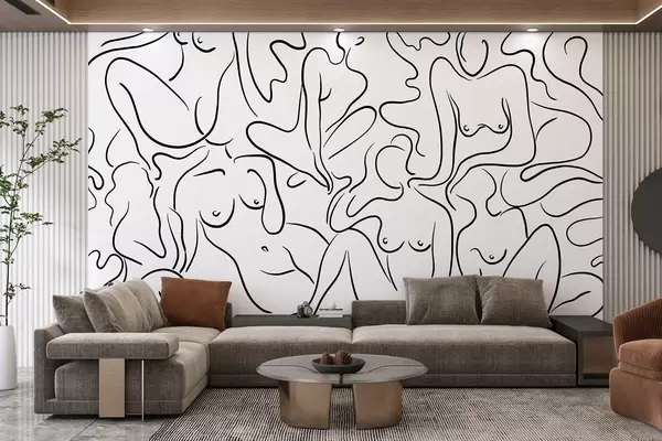 Murais de parede Desenho de linhas, silhuetas de corpos de mulheres, abstração, cor preta Nr. w03755
