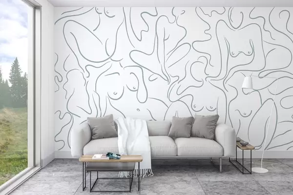 Murais de parede Desenho de linhas, silhuetas anatómicas, abstração, cor azul Nr. w03755v1