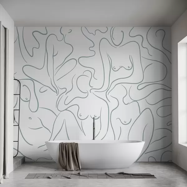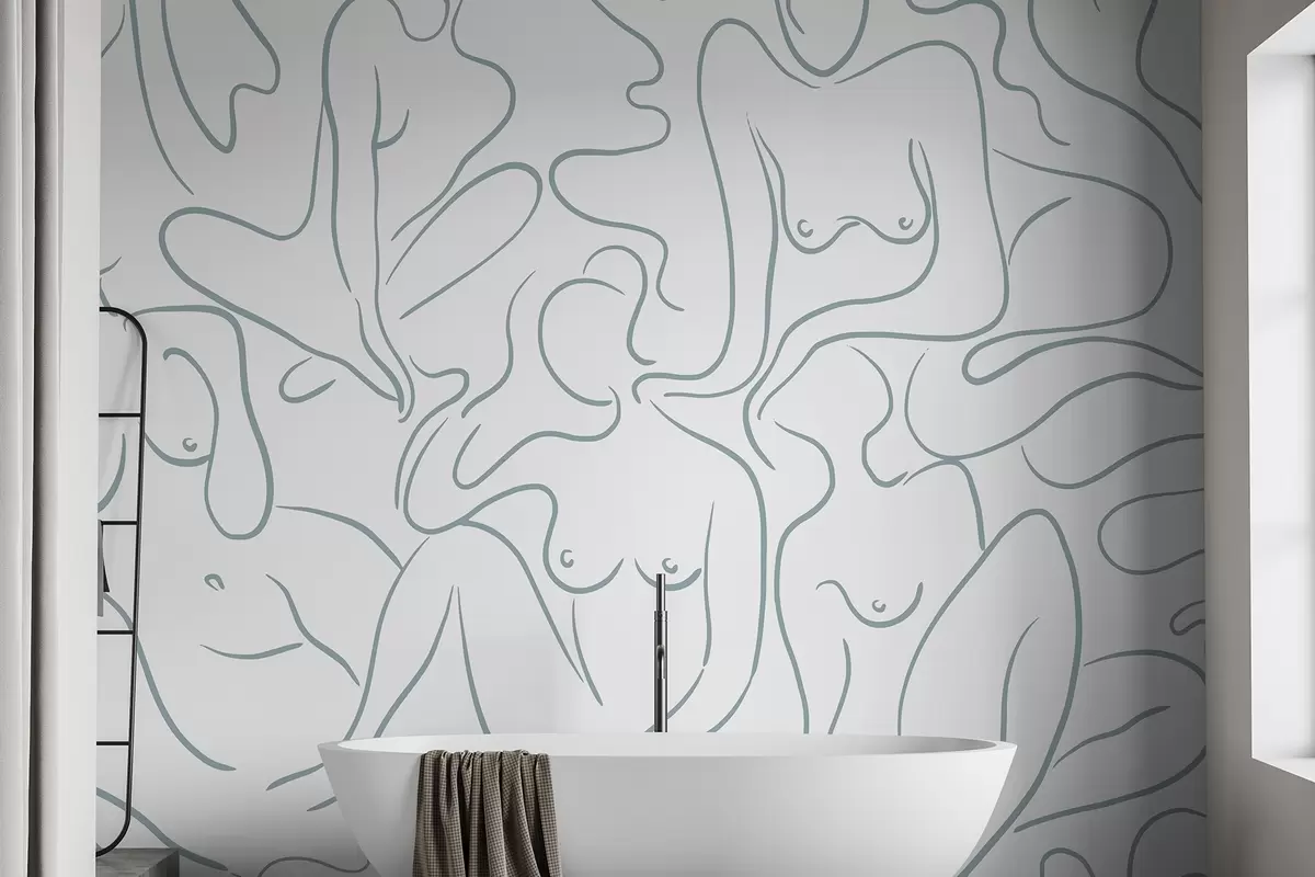 Murais de parede Desenho de linhas, silhuetas anatómicas, abstração, cor azul Nr. w03755v1