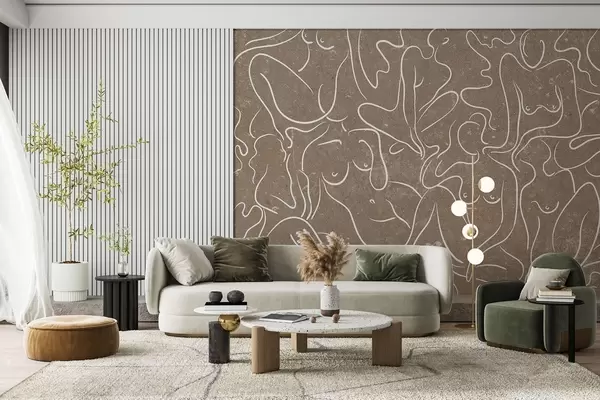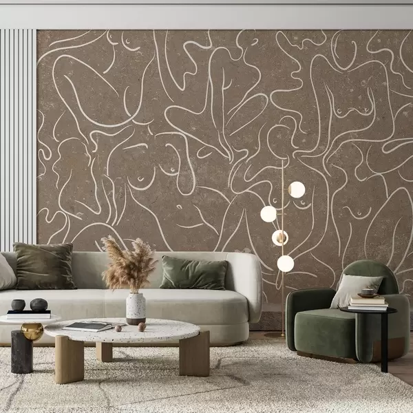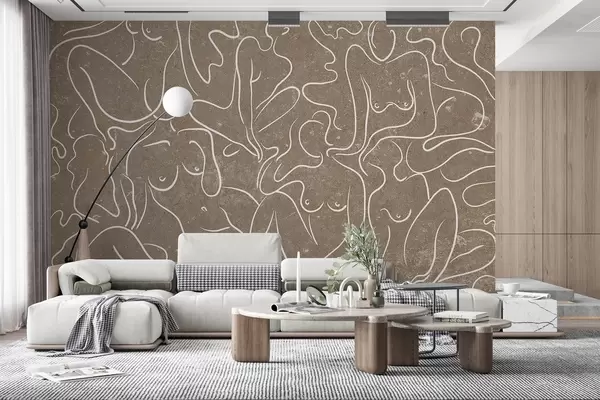 murais de parede Desenho de linhas de silhuetas anatómicas, abstração, fundo bege  w03756