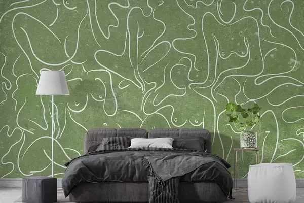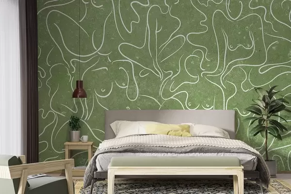 Murais de parede Desenho de linhas de silhuetas anatómicas, abstração, fundo verde Nr. w03756v2