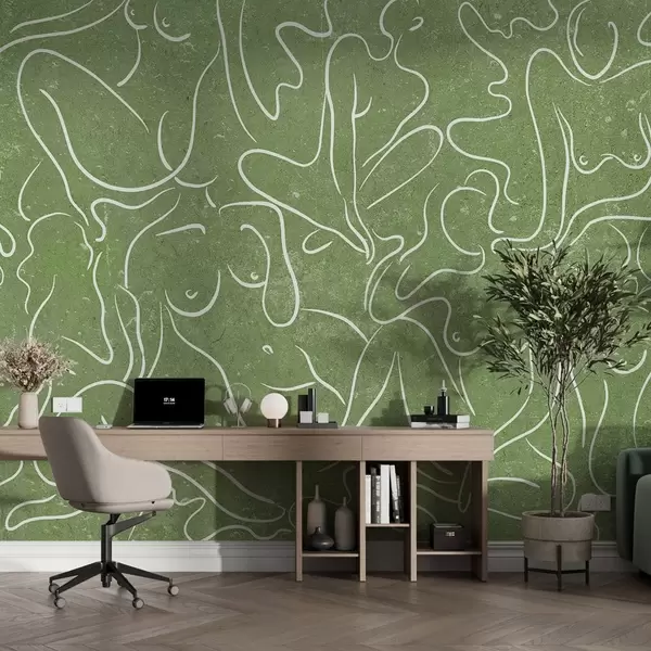 Murais de parede Desenho de linhas de silhuetas anatómicas, abstração, fundo verde Nr. w03756v2