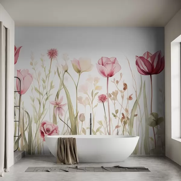 Murais de parede Suavidade do prado,Tulipas, flores, caules, folhas, plantas silvestres Nr. w03785