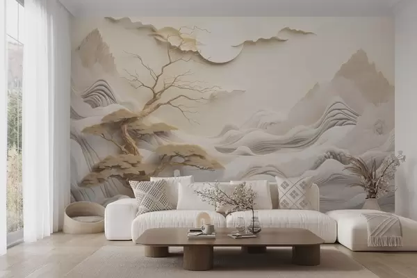Murais de parede Paisagem oriental com árvores e montanhas Nr. w03803
