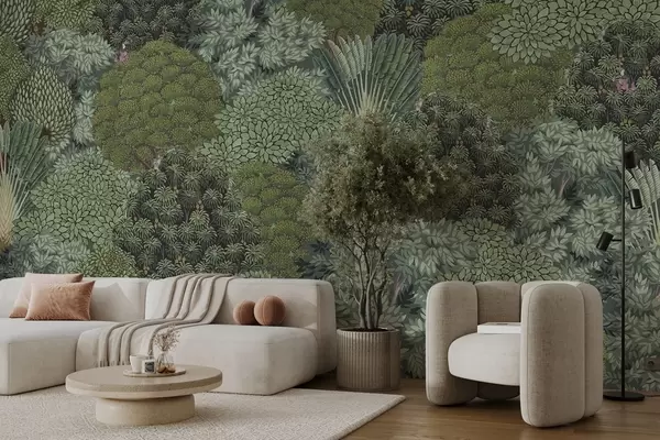 Murais de parede Selva tropical densa com árvores pormenorizadas Nr. w03811