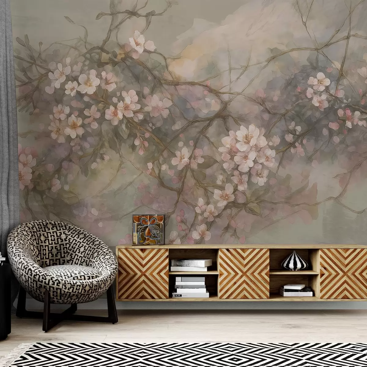 Murais de parede Aguarela abstrata de ramos com flores Nr. w03815