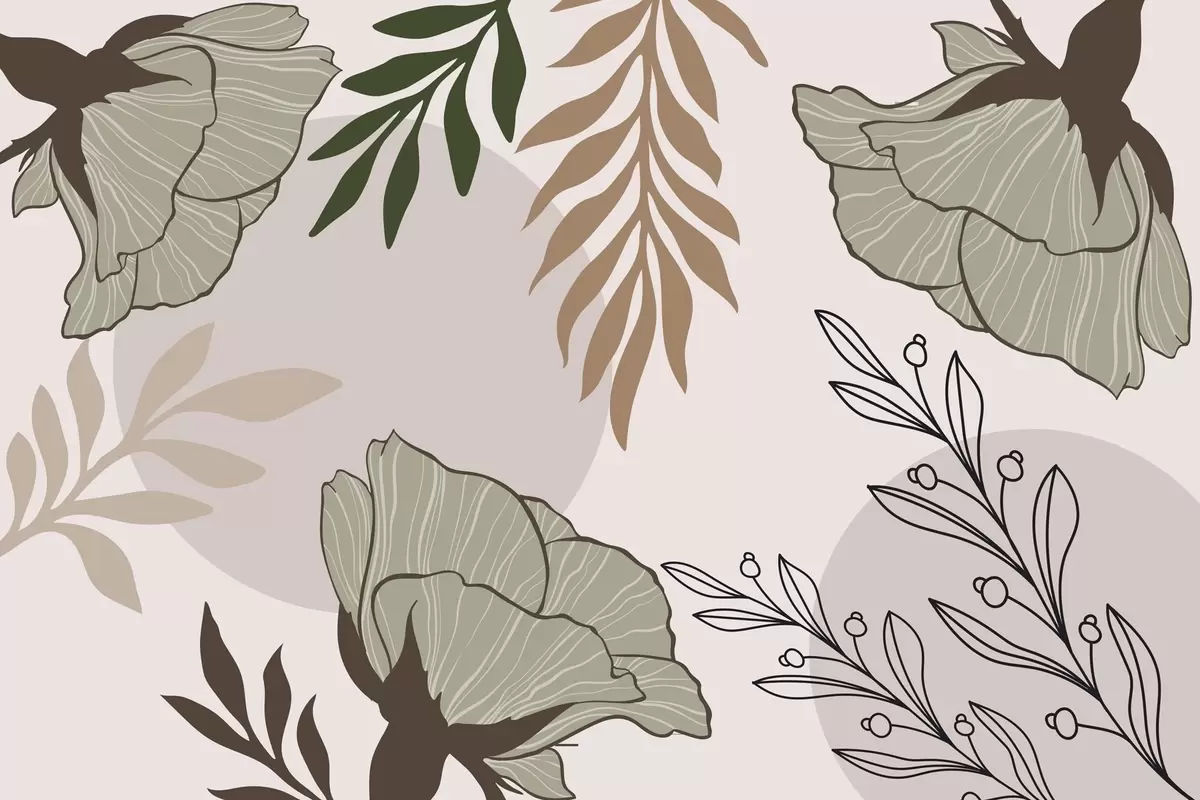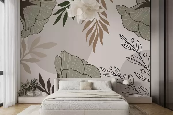 Murais de parede Flores e folhas numa composição abstrata Nr. w03856