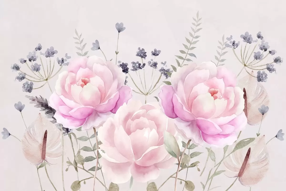 Murais de parede Flores e plantas em estilo aguarela Nr. w03862
