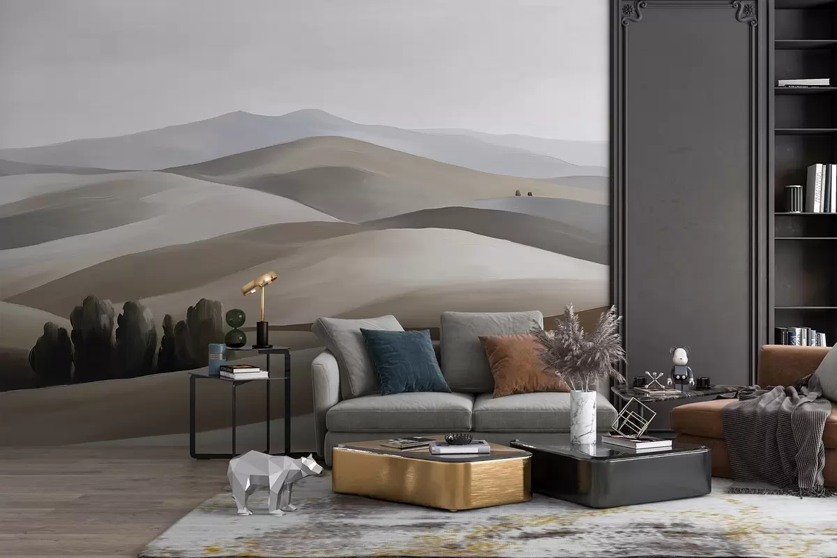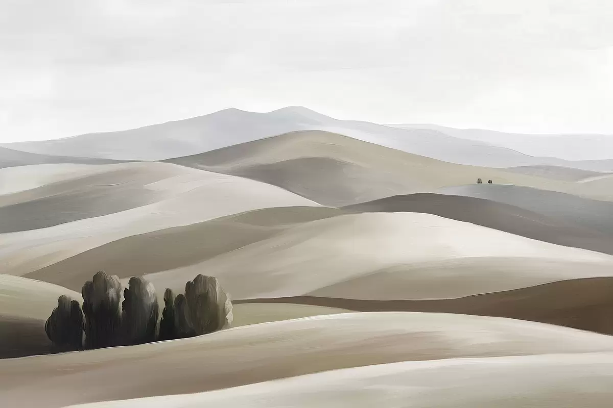 Murais de parede Paisagens com árvores, Toscana, cores bege e cinzento, estilo óleo Nr. w03880v1