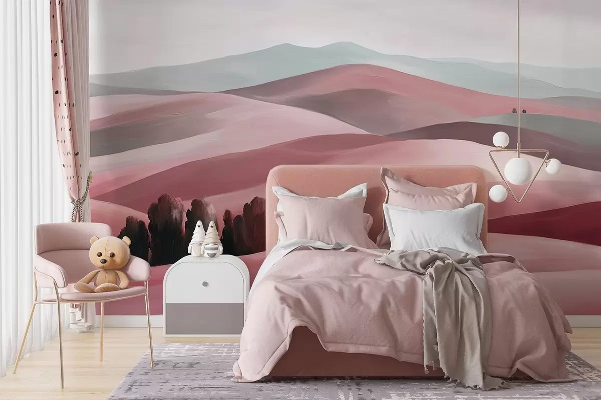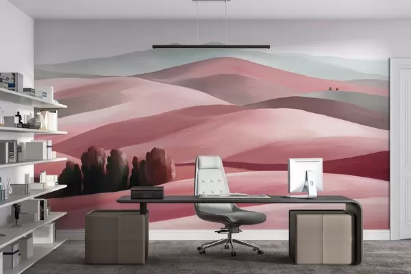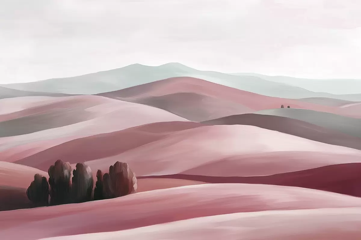 Murais de parede Paisagens com árvores, Toscana, cores cor-de-rosa, estilo óleo Nr. w03880v2