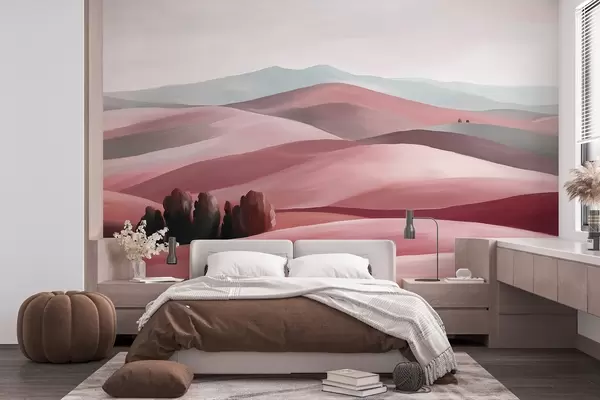 Murais de parede Paisagens com árvores, Toscana, cores cor-de-rosa, estilo óleo Nr. w03880v2