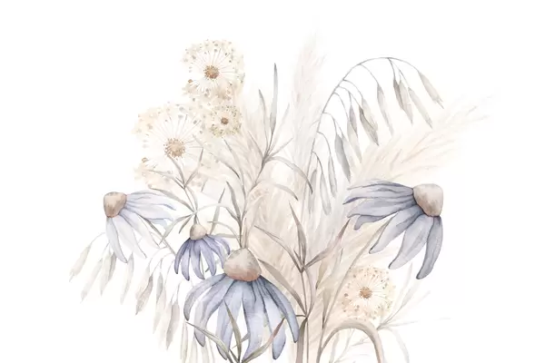 Murais de parede Dentes-de-leão e flores entre ervas secas Nr. w03908