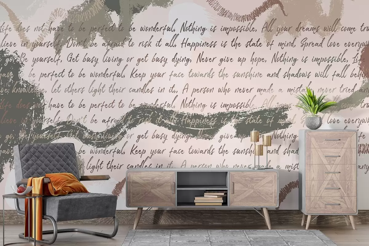 Murais de parede Design com citações inspiradoras, abstração, cores naturais Nr. w03909