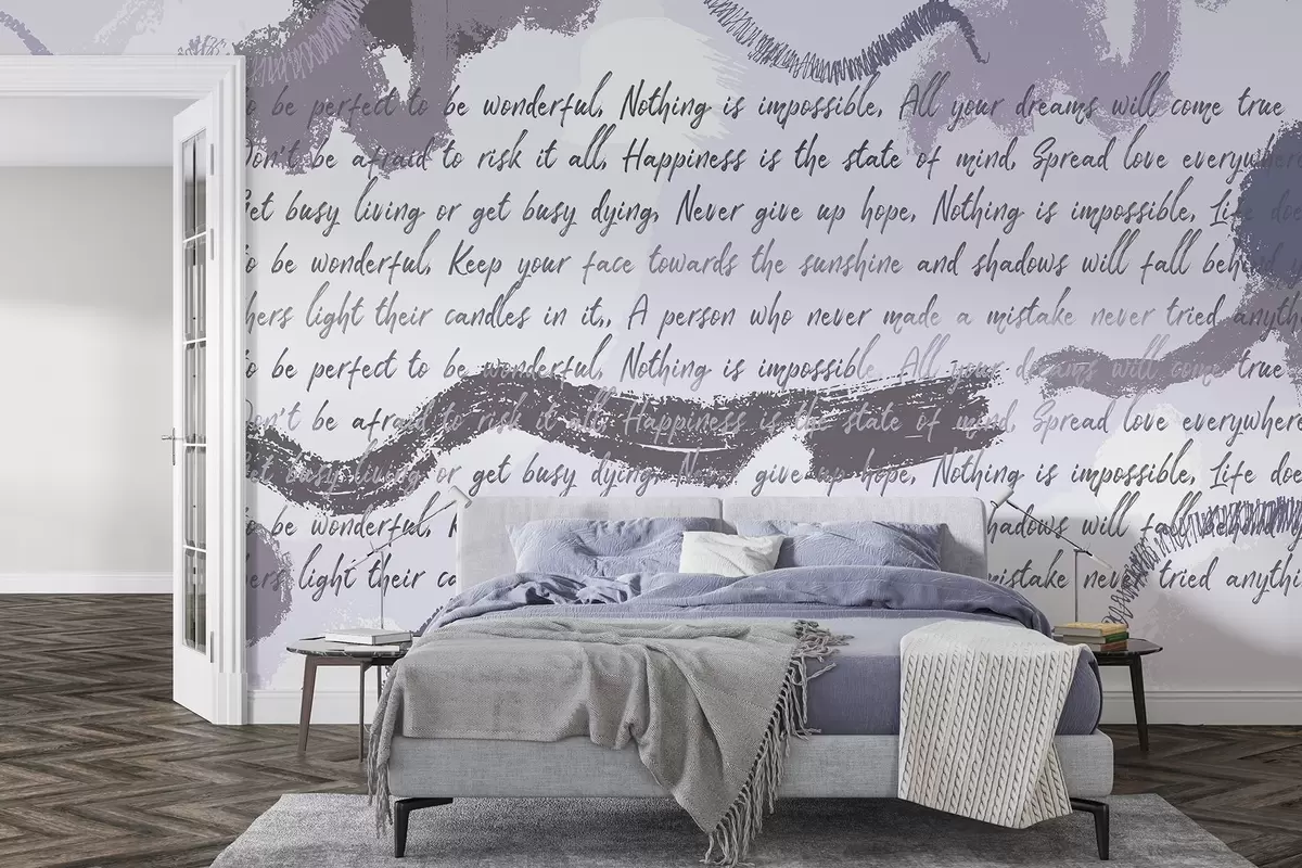 Murais de parede Design com citações inspiradoras, abstração, cores púrpura Nr. w03909v2