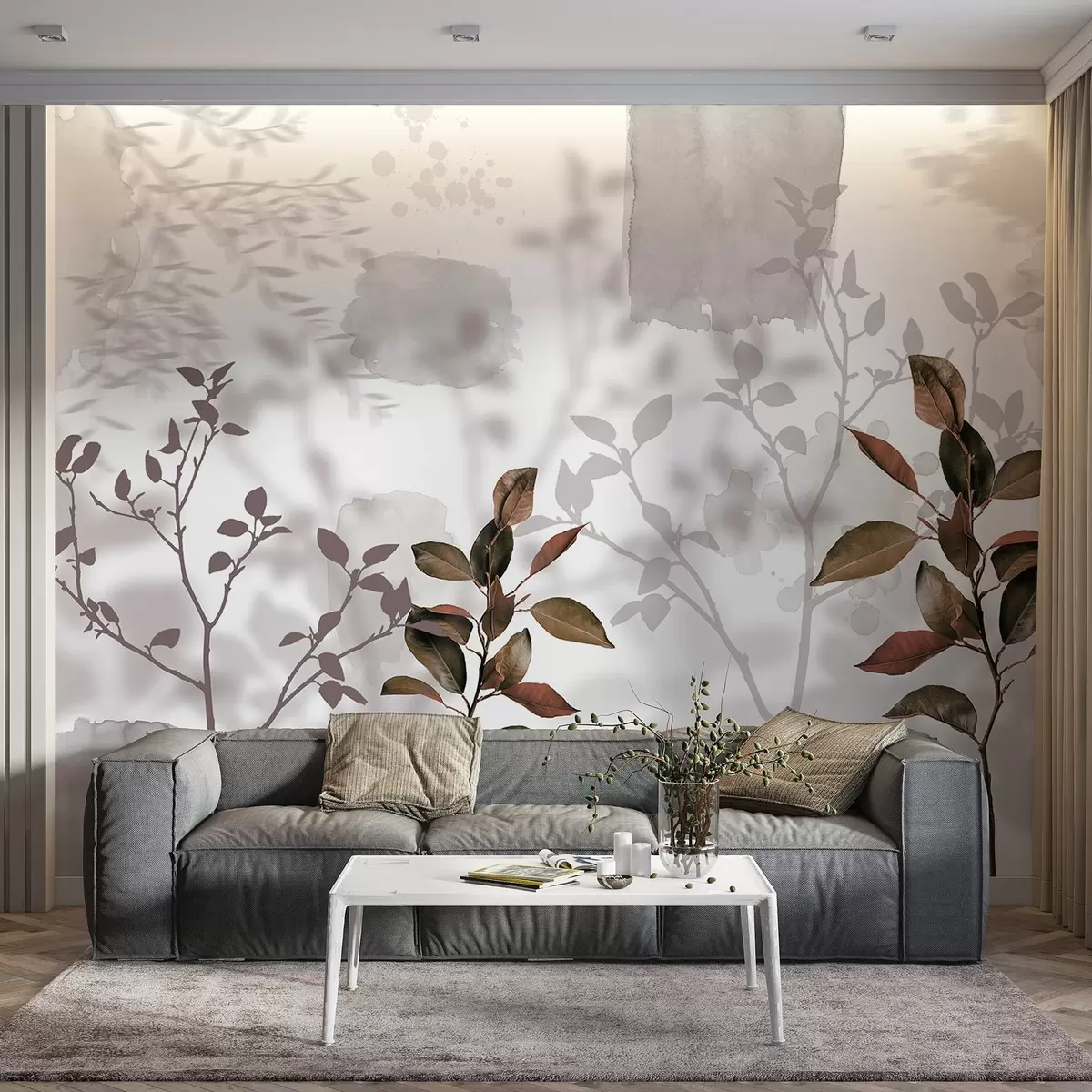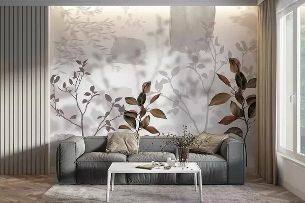 Murais de parede Folhas de limoeiro, sombras de ramos de árvores, natureza, aguarela Nr. w03910