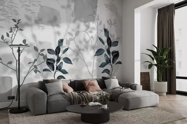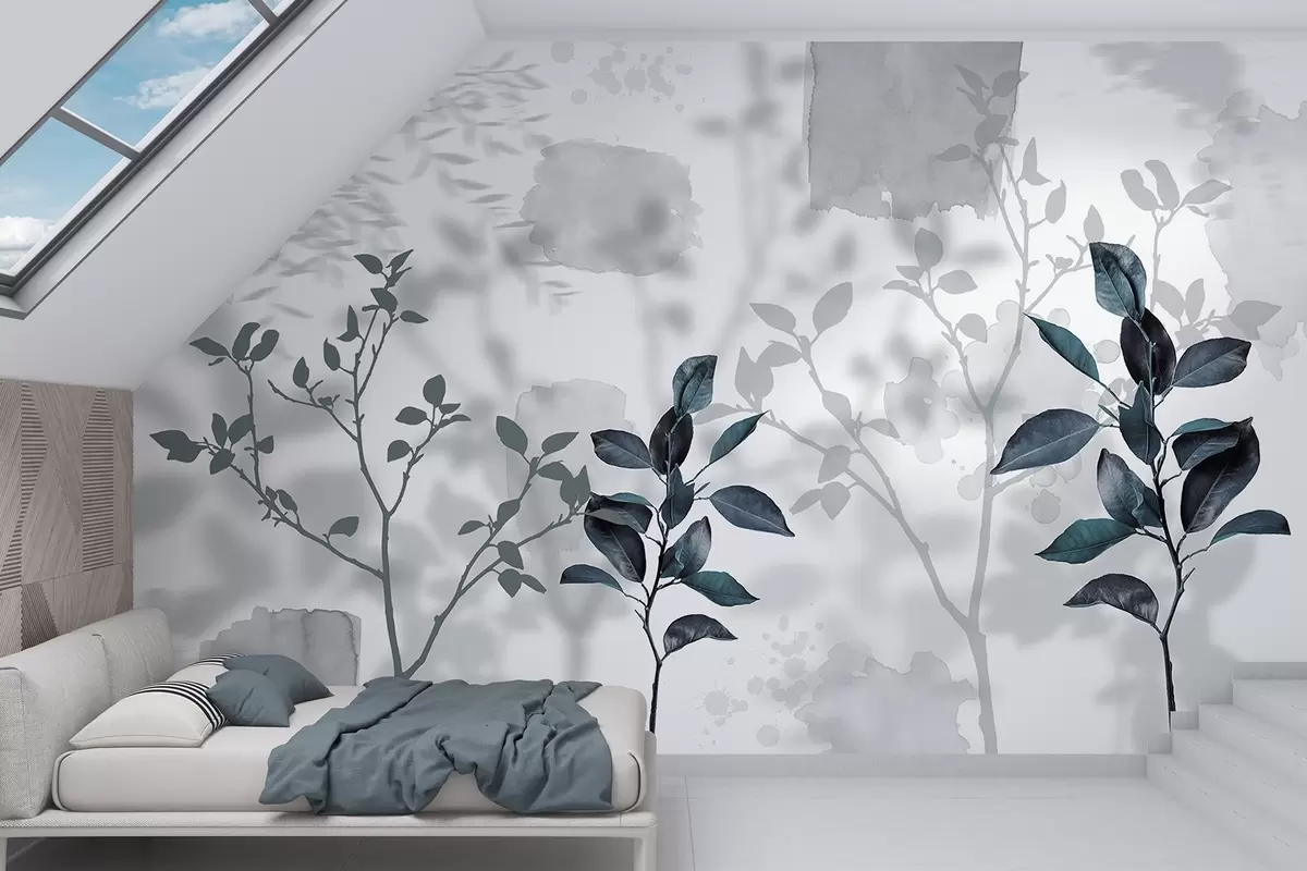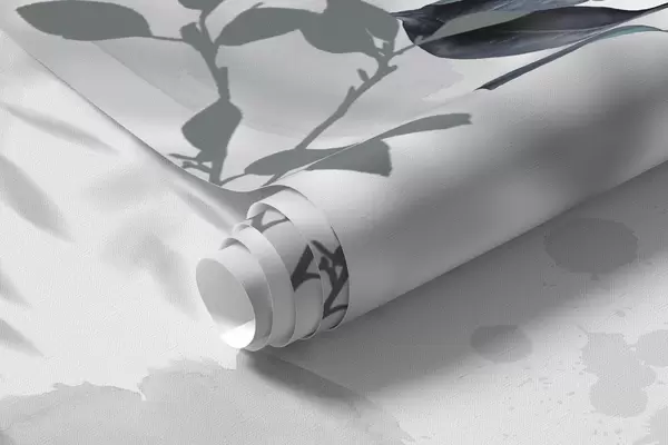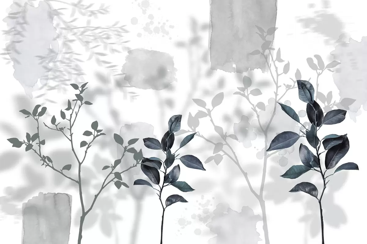 Murais de parede Folhas de limoeiro, sombras de ramos de árvores, natureza, aguarela, azul Nr. w03910v2