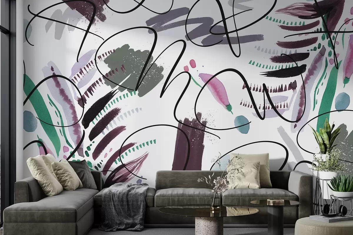 Murais de parede Letras a tinta, caligrafia, pinceladas, cores pastel, abstração Nr. w03912v1