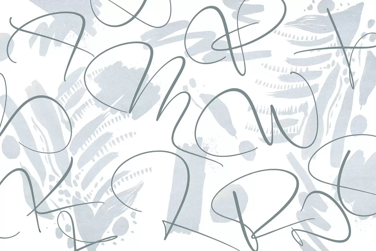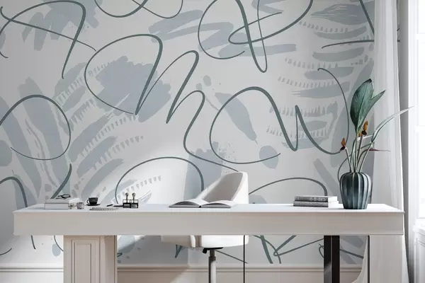 Murais de parede Abstração caligráfica com letras, pinceladas, cor azul Nr. w03913v1