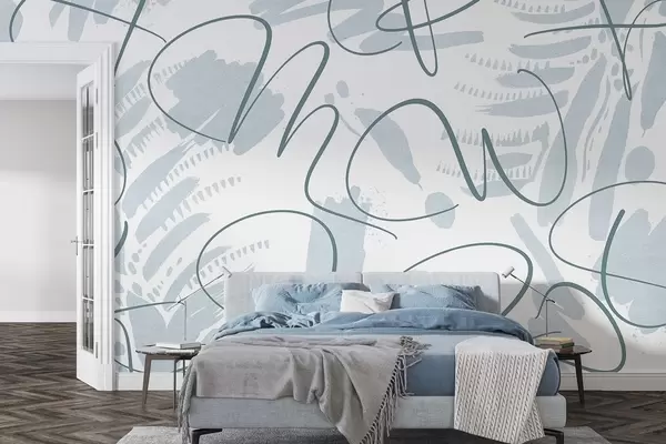Murais de parede Abstração caligráfica com letras, pinceladas, cor azul Nr. w03913v1