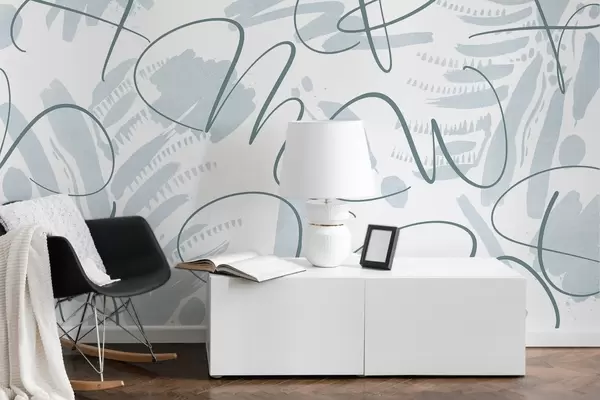 Murais de parede Abstração caligráfica com letras, pinceladas, cor azul Nr. w03913v1