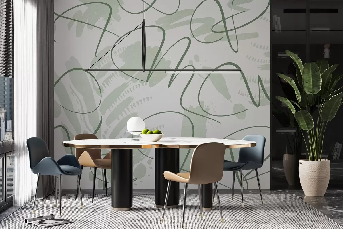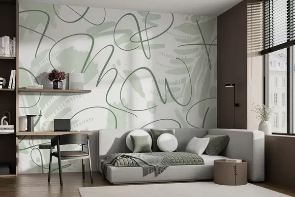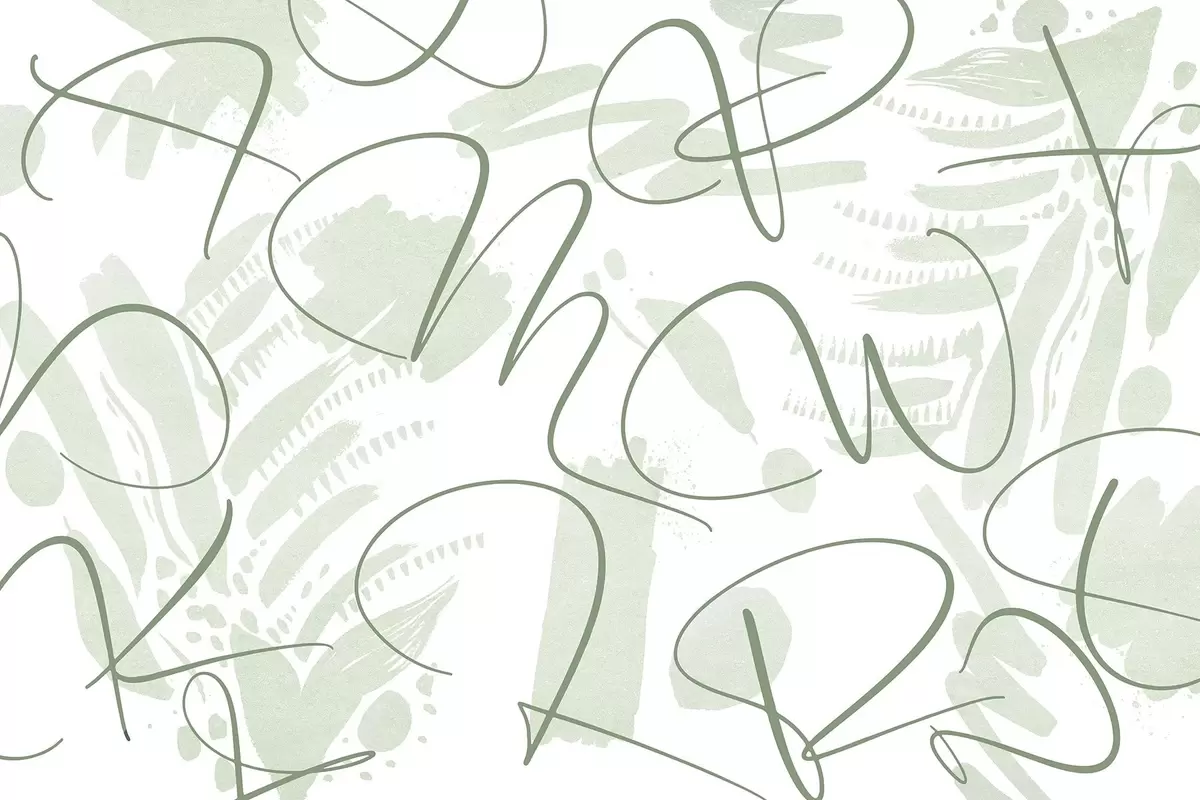 Murais de parede Abstração caligráfica com letras, pinceladas, cor verde Nr. w03913v3