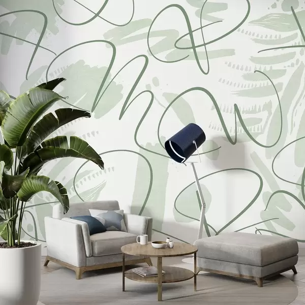 Murais de parede Abstração caligráfica com letras, pinceladas, cor verde Nr. w03913v3