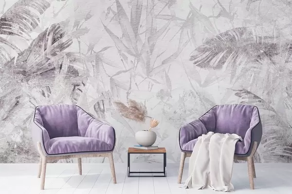 Murais de parede Abstração floral em estilo grunge com imitação de abrasão, tons de púrpura Nr. w03926v1