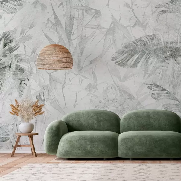 Murais de parede Abstração floral em estilo grunge com imitação de abrasão, tons de verde Nr. w03926v2
