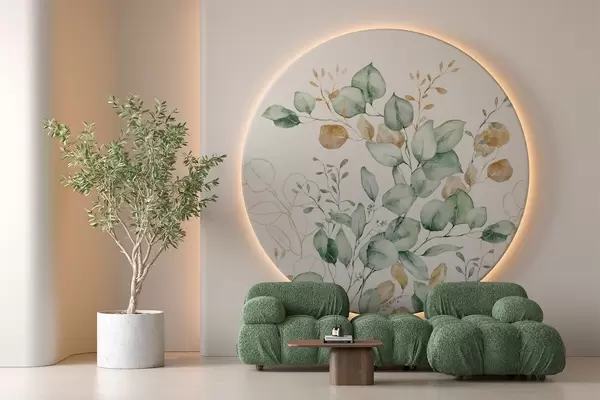 Murais de parede Vegetação e ramos imitação de aguarela texturada, tons de verde e amarelo Nr. w03927