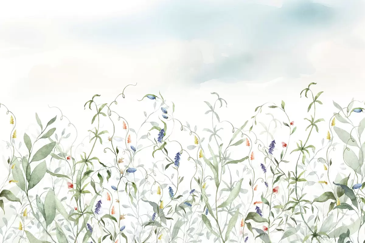 Murais de parede Imitação de relva e vegetação em aguarela texturada Nr. w03928v1