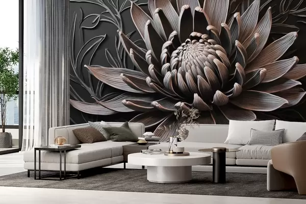 Murais de parede Flor Protea, bege e preta Nr. w03930