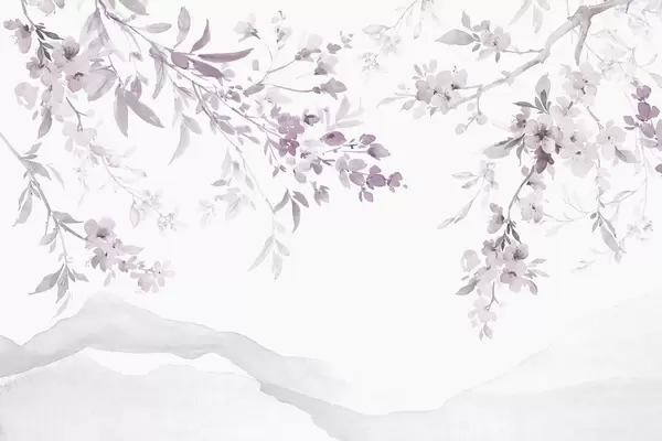 Murais de parede Ramos floridos, imitação de aguarela Nr. w03935