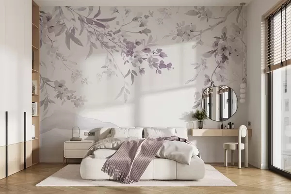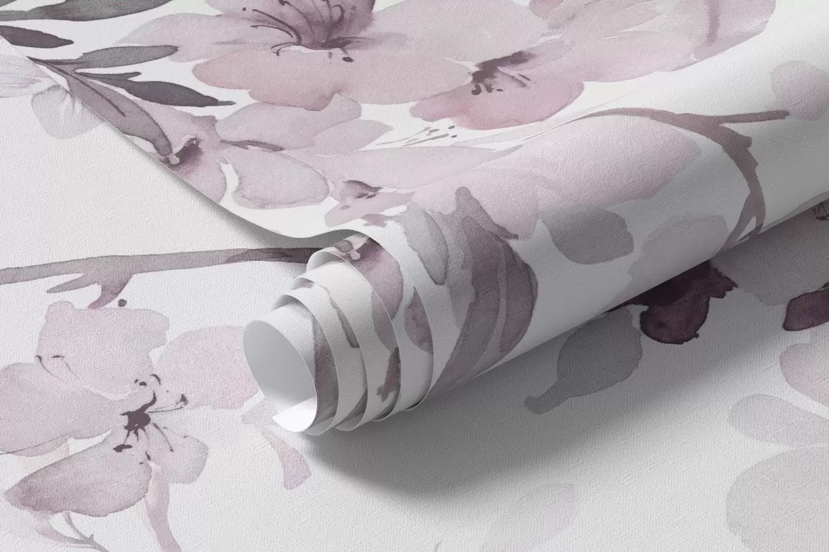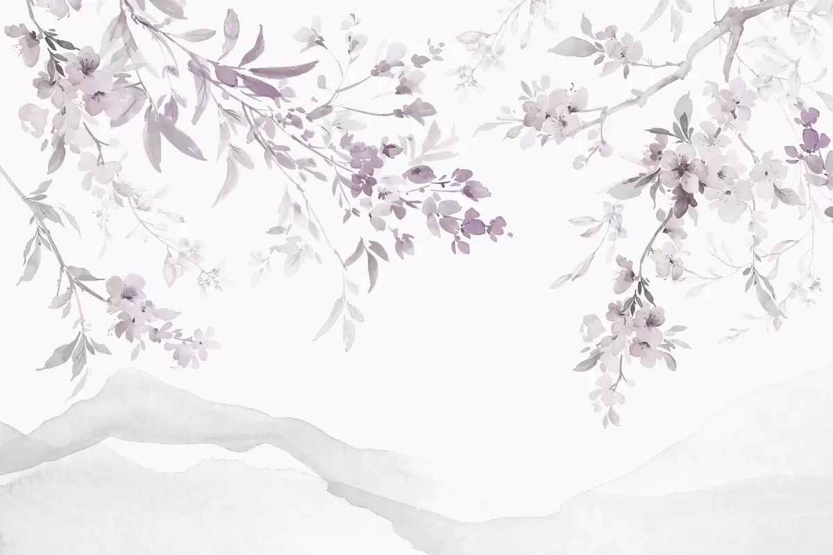 Murais de parede Ramos floridos, imitação de aguarela, tonalidades rosa-púrpura Nr. w03935v1