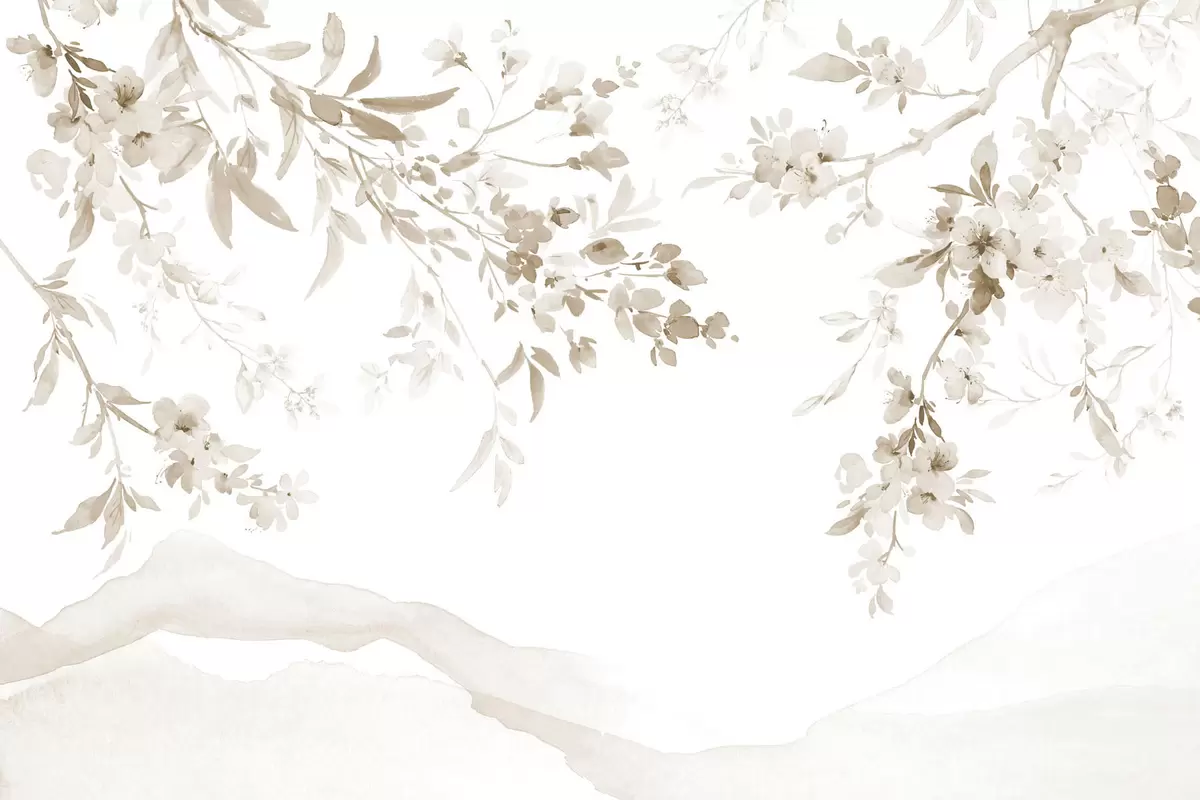 Murais de parede Ramos floridos, imitação de aguarela, tons de bege Nr. w03935v2
