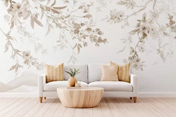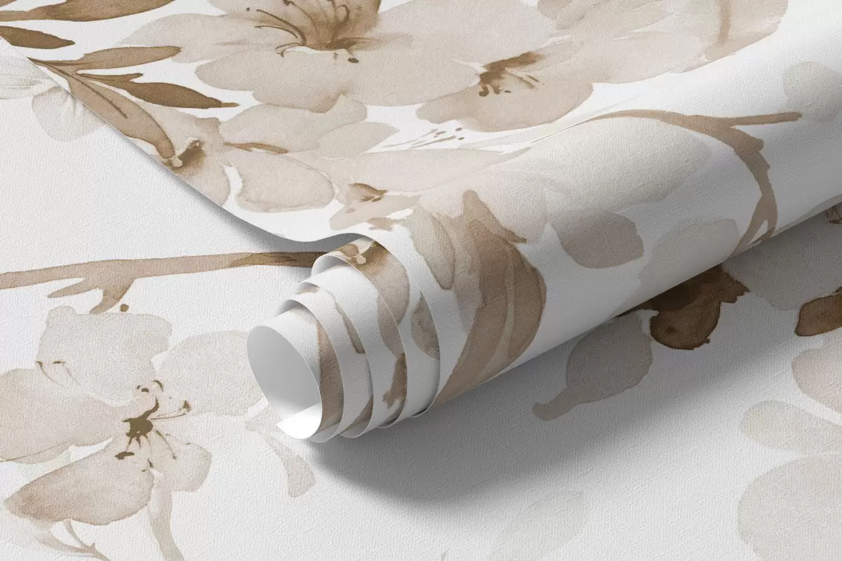 murais de parede Ramos floridos, imitação de aguarela, tons de bege w03935v2