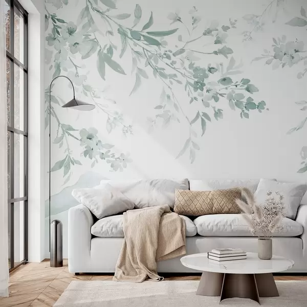 Murais de parede Ramos floridos, imitação de aguarela, tons de verde Nr. w03935v3
