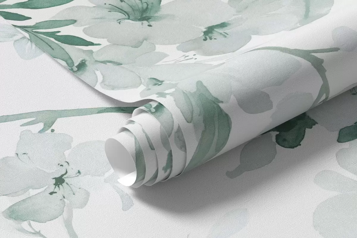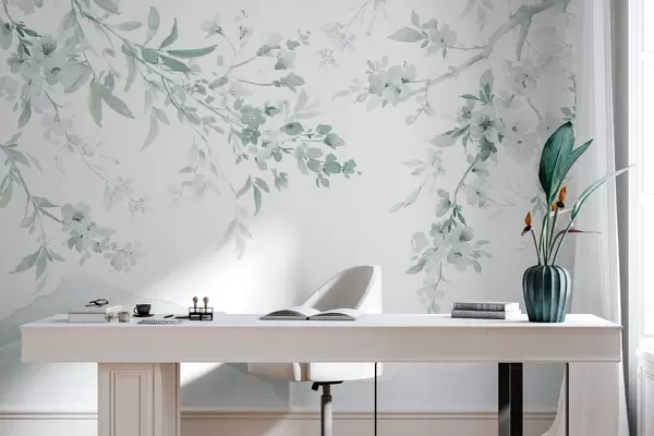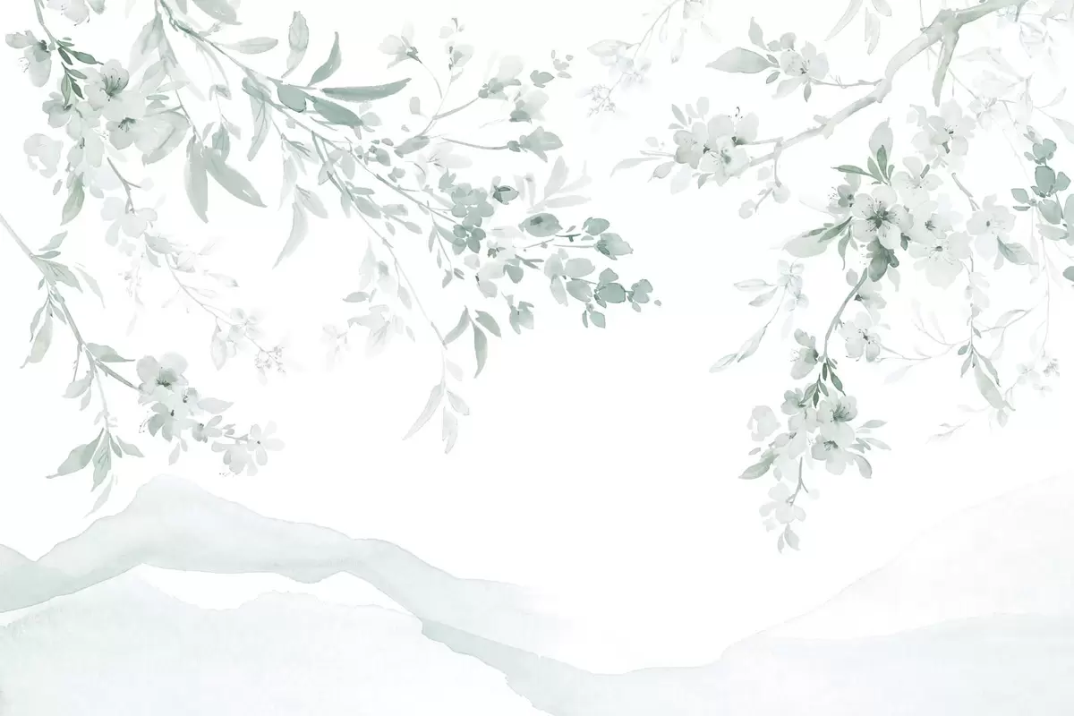 Murais de parede Ramos floridos, imitação de aguarela, tons de verde Nr. w03935v3
