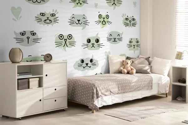 Murais de parede Caras de gato em tons de verde Nr. w03951v3