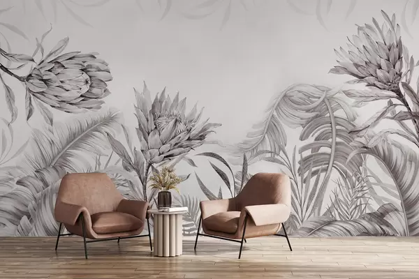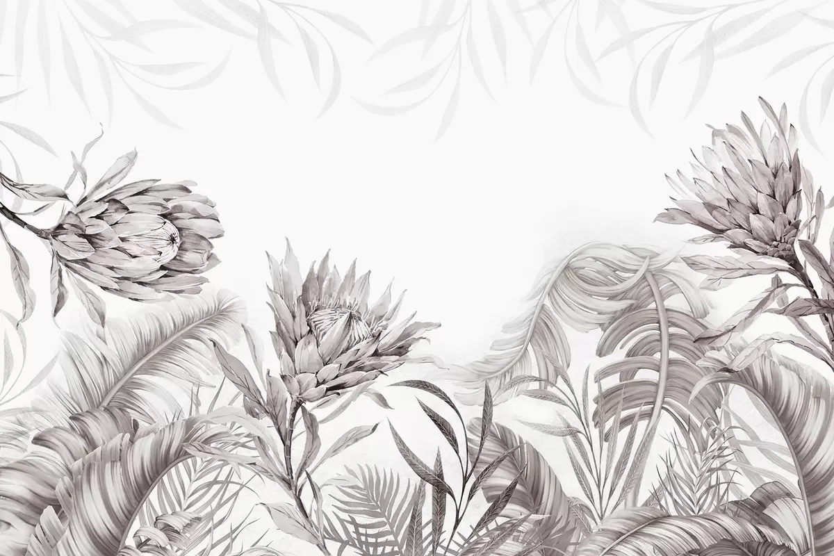 Murais de parede Proteia entre folhas tropicais Nr. w03952v1